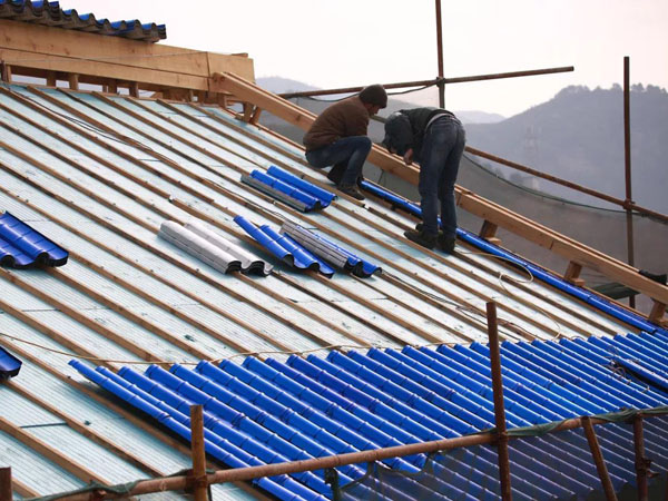 古文殊寺東西廂房的藍色琉璃瓦片,與大殿金瓦采用同樣的特殊工藝,鋪設(shè)過程細致、復(fù)雜,要對瓦片進行三次以上的打磨上色,令瓦片可以更長久的保持亮澤。